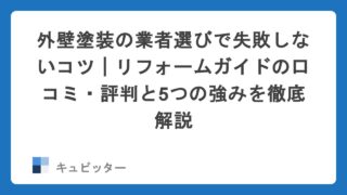 こんにちは、キュピッター編集部です。 「新築マンションは高すぎて手が届かないけれど、理想の住まいは諦めたくない」 そんな思いで中古マンションを購入し、マンションリノベーションを検討されている方は多いのではないでしょうか。 しかし、いざリノベーションを始めようとすると「どの業者に頼めばいいのかわからない」「見積もりを依頼したら、しつこい営業電話がかかってくるのでは?」といった不安が尽きませんよね。 今回は、マンションリノベーションで絶対に失敗したくない方のために、プロの目利きで最適な会社を提案してくれるサービス「リフォームガイド」の魅力について、SEOの専門家視点で徹底的に解説します。 【完全無料】リフォームガイドでプロに理想のリノベーション会社を選んでもらう マンションリノベーション、会社選びで「一生の後悔」をしていませんか? 「新築より安く済むから」と選んだ中古マンションのリノベーション。しかし、もし会社選びに失敗してしまったら、その「安さ」は一瞬で吹き飛んでしまいます。 「追加費用が次々と発生して、結局予算オーバーになった」 「マンションの規約を知らない業者で、管理組合とトラブルに...