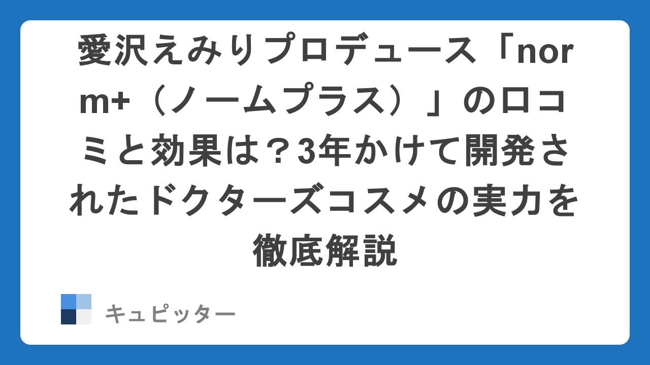そんなスキンケア迷子の方々の間で、今、あるブランドが爆発的な支持を集めているのをご存知でしょうか。それが、美容のカリスマ・愛沢えみりさんがプロデュースする「norm+(ノームプラス)」です。