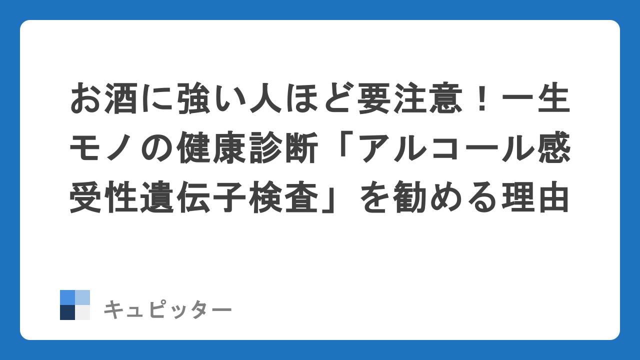 お酒に強い人ほど要注意!一生モノの健康診断「アルコール感受性遺伝子検査」を勧める理由