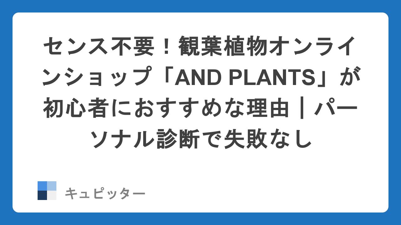 これまで「自分には無理かも」と諦めていた方も、AND PLANTSの力を借りれば、きっと素敵なパートナーに出会えるはずです。診断、鉢、保証。すべてが揃った「失敗しない」体験を、あなたも始めてみませんか?