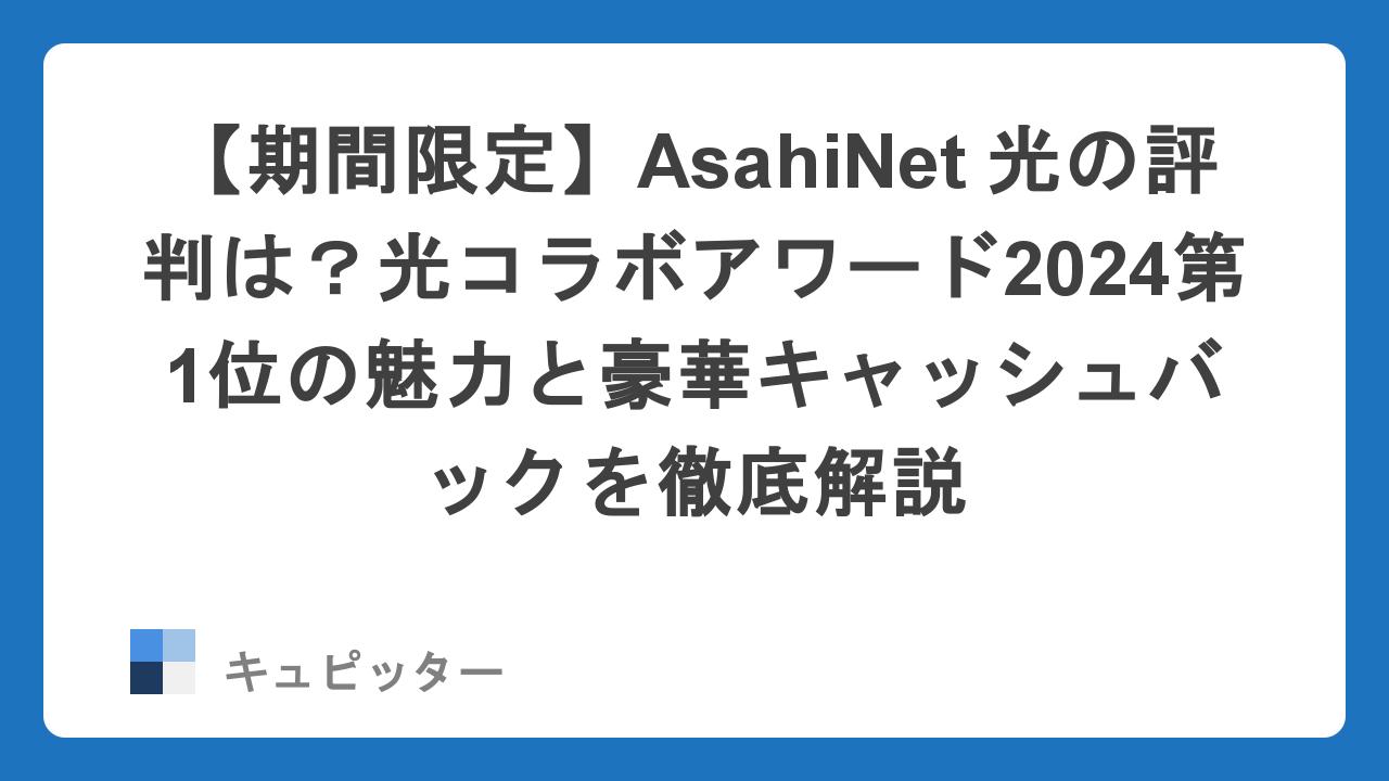 今回ご紹介する「AsahiNet 光(朝日ネット)」は、第三者機関からも高く評価されている高品質な光回線です。しかも今なら、新規申し込みで高額な還元が狙える破格のキャッシュバック特典や月額料金の大幅割引など、見逃せないキャンペーンが実施されています。