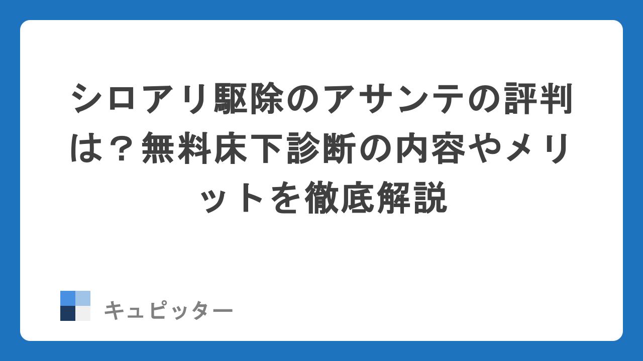 今回は、シロアリ防除の業界最大手であり東証プライム上場企業でもある「株式会社アサンテ」の無料床下診断について詳しく解説します。大切な資産を守るために、なぜ今「点検」が必要なのか、その理由を探っていきましょう。