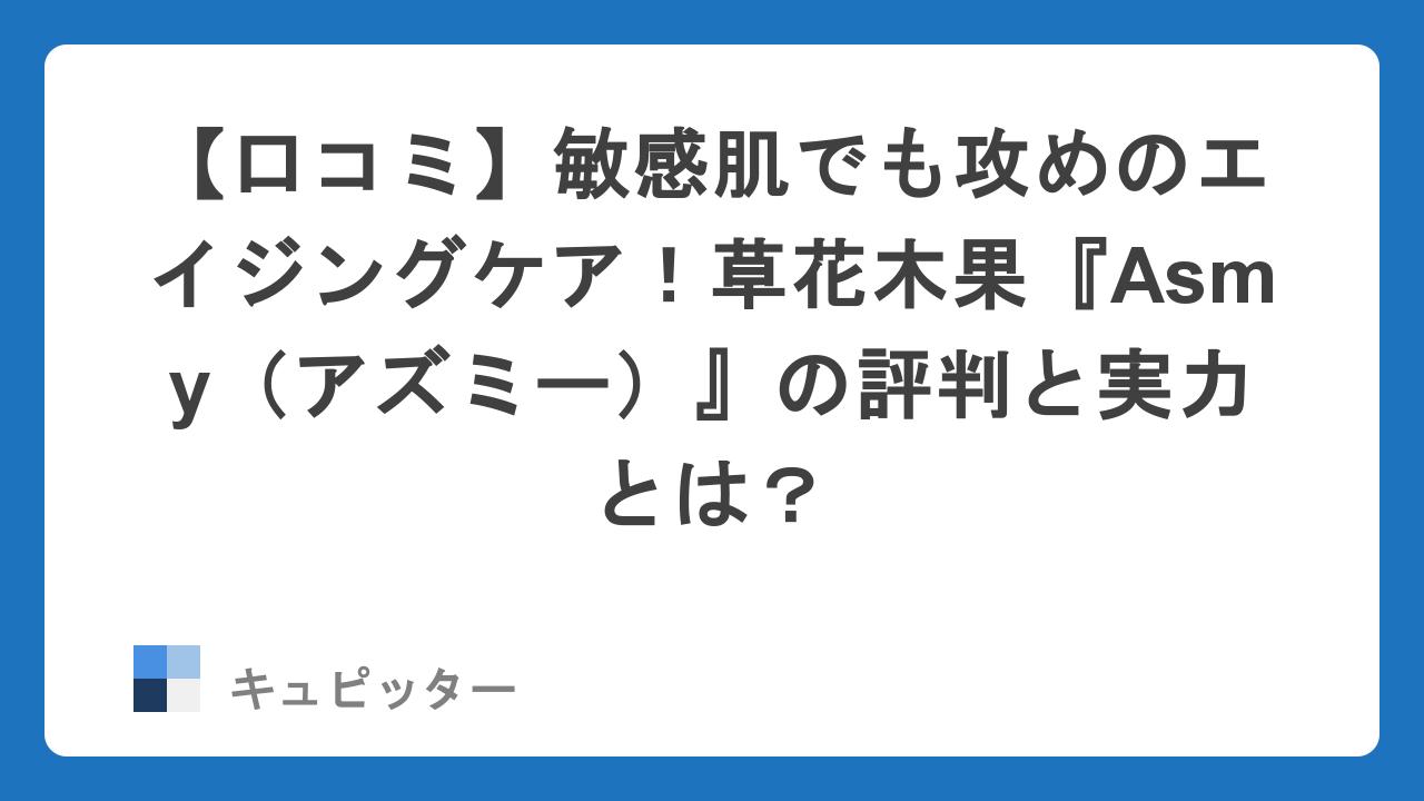 それが、自然派スキンケアの先駆けとして20年以上の歴史を持つ「草花木果(そうかもっか)」から誕生した、敏感肌向けエイジングケアライン『Asmy(アズミー)』です。