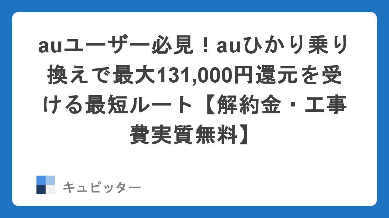 今、ネット通の間で話題なのが、正規代理店「株式会社25」が実施しているauひかりのWEB申込キャンペーン。なんと最大131,000円という圧倒的な還元額に加え、「他社解約金の負担」まで用意されているんです。