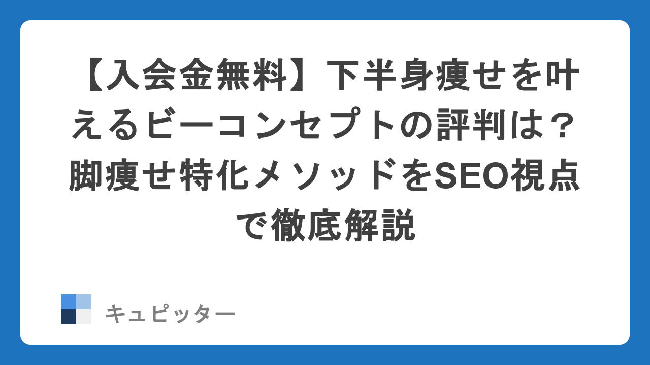今回ご紹介する「ビーコンセプト(B-CONCEPT)」は、そんな下半身の悩みに特化した女性専用パーソナルジム。今なら入会金が無料になるなど、非常にお得な「トリプルキャンペーン」も実施中です。