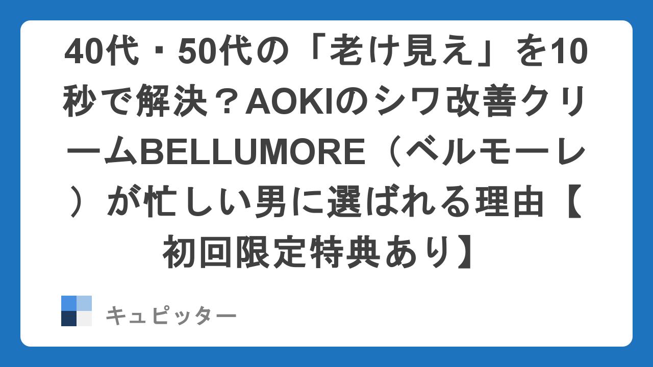 実は今、そんな多忙なビジネスマンの間で、あるスキンケアアイテムが爆発的な支持を集めています。それが、スーツのプロ・AOKIグループ(寿本舗)が手掛ける「BELLUMORE(ベルモーレ)」です。
