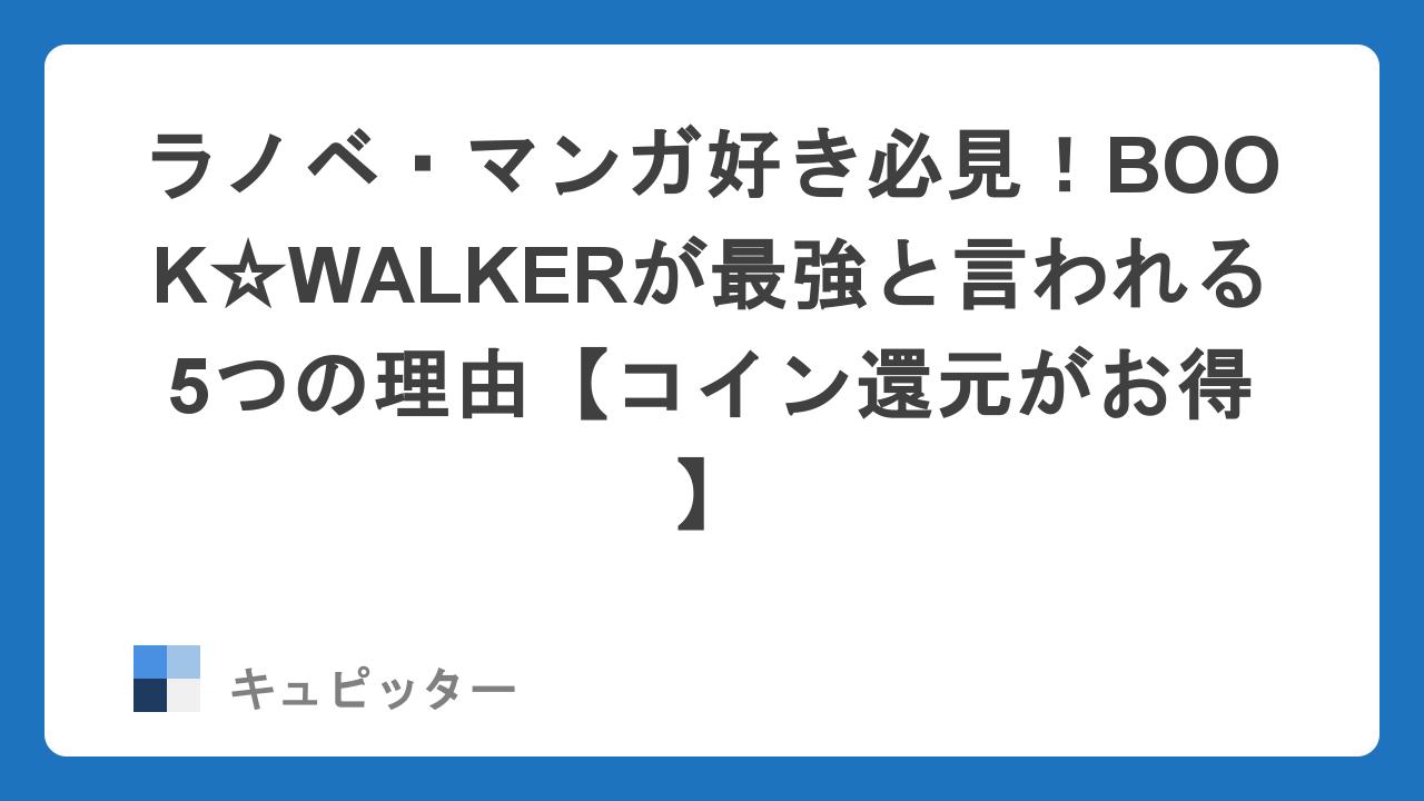 なぜ、数ある電子書籍サービスの中でもBOOK☆WALKERが「最強」と呼ばれるのか。情報メディア「キュピッター」が、その人気の秘密と賢い活用術を徹底解説します。