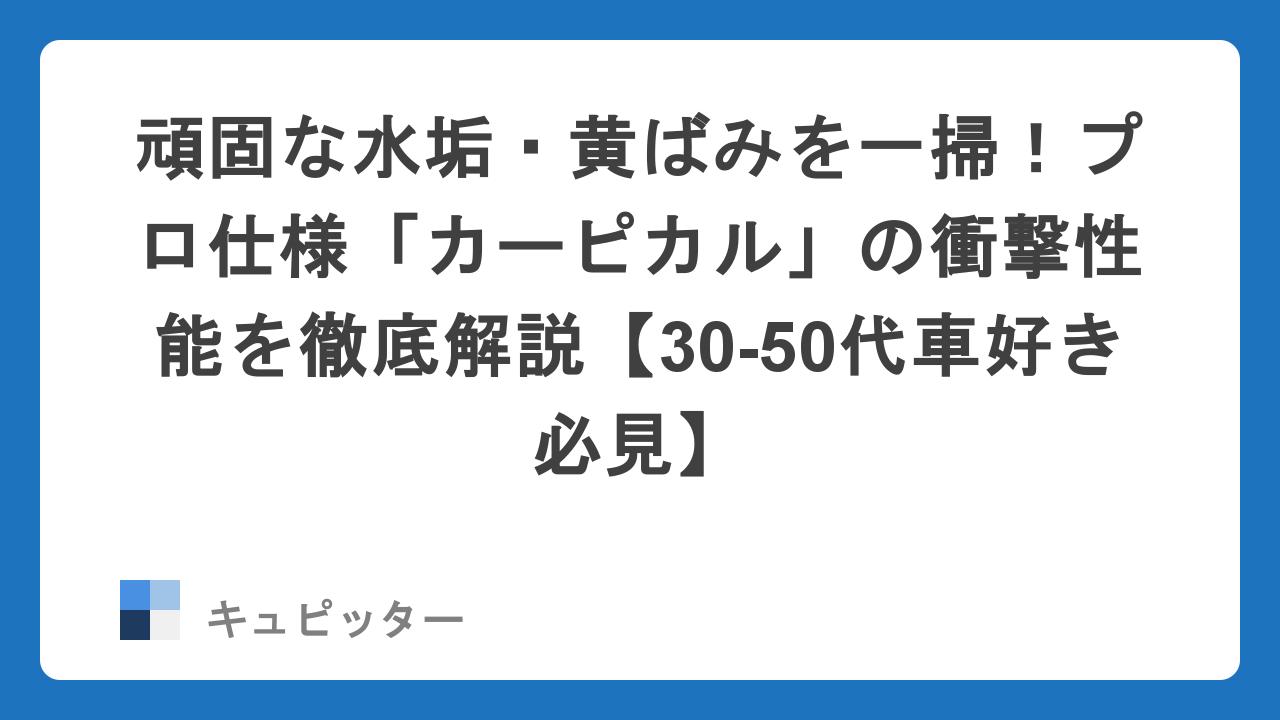 こんにちは、キュピッター編集部です。今回は、そんな洗車へのこだわりが強い30代〜50代の男性読者の皆様に向けて、業界のプロが密かに愛用し続けている本物のカーケアブランド「カーピカル(Carpikal)」をご紹介します。