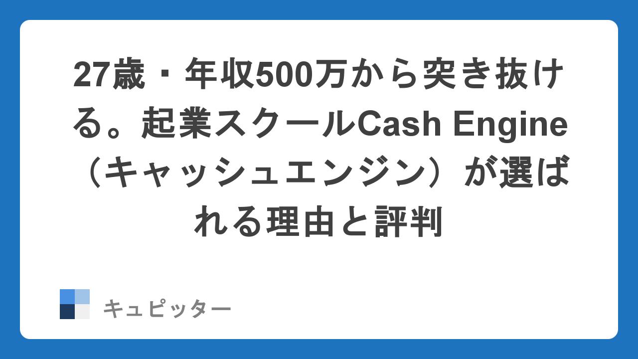 27歳・年収500万から突き抜ける。起業スクールCash Engine(キャッシュエンジン)が選ばれる理由と評判