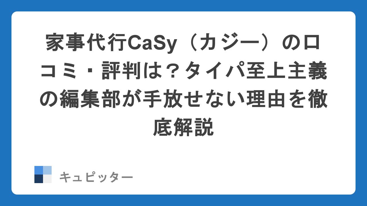 今の時代、家事は「自分ですべて抱え込むもの」から、賢く「外注」して自分の時間を作るものへと変わりつつあります。今回は、タイパ(タイムパフォーマンス)を重視する現代人の強い味方、家事代行サービス「CaSy(カジー)」をご紹介します。