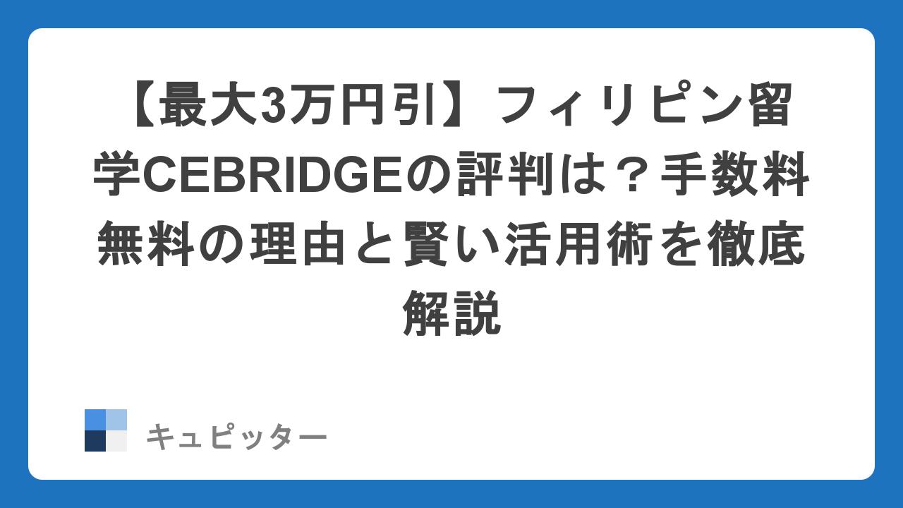 そこで今回は、「損をせず、最短ルートで英語力を変えたい」という慎重派のあなたにこそ知ってほしい、留学エージェント「CEBRIDGE(セブリッジ)」をご紹介します。
