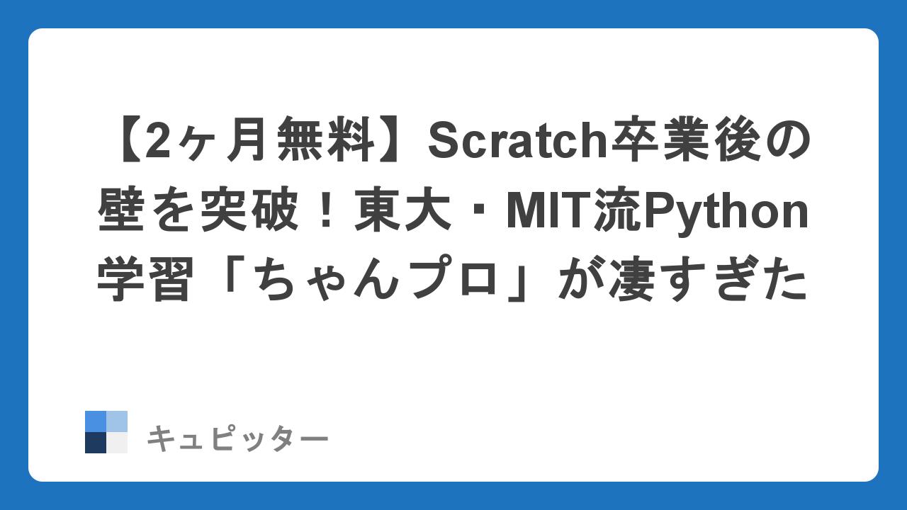 そんな「Scratchの次」を探しているご家庭に、今ぜひ知ってほしいサービスがあります。それが、本格的なプログラミング言語「Python(パイソン)」を自習形式で学べる「ちゃんプロ」です。