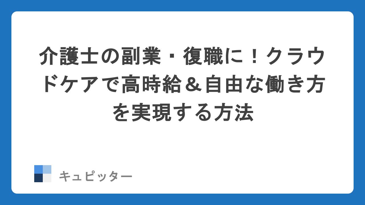 今回ご紹介するのは、シェアリングエコノミーという新しい仕組みを取り入れた自費訪問介護サービス「クラウドケア(CrowdCare)」です。これまでの「介護=低賃金・重労働」という常識を覆す、自由で高待遇な新しい働き方を詳しくお伝えします。