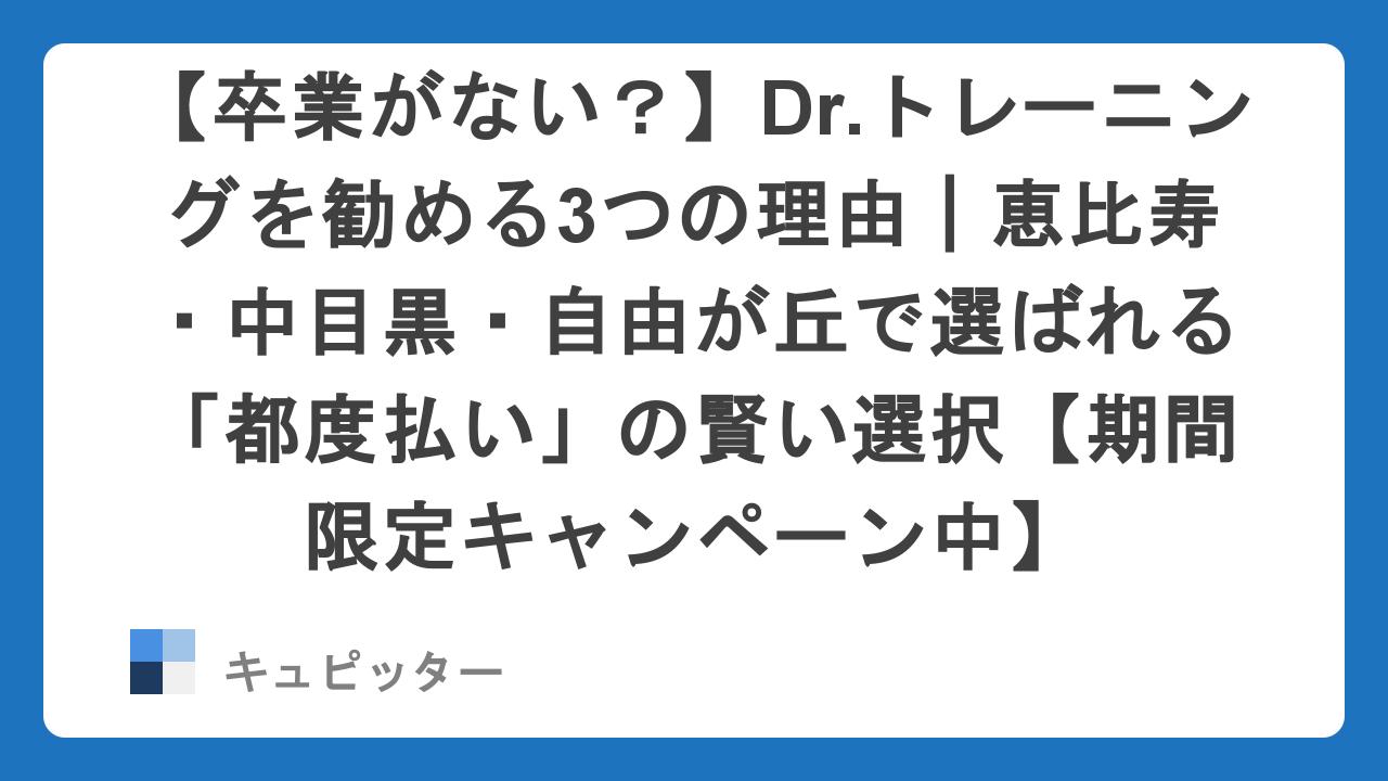 そんな欲張りな願いを叶えてくれるのが、今注目を集めている「Dr.トレーニング(ドクタートレーニング)」です。なぜここが、数多あるジムの中で“最後のジム”として選ばれるのか。キュピッター編集部がその人気の秘密を徹底解剖します。