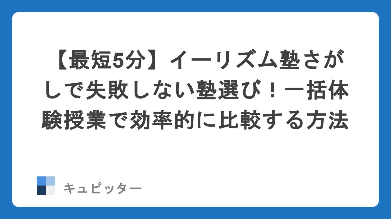 今回は、忙しい保護者様の強い味方となるサービス「イーリズム塾さがし」を活用して、失敗しない塾選びを最短ルートで進める方法をご紹介します。