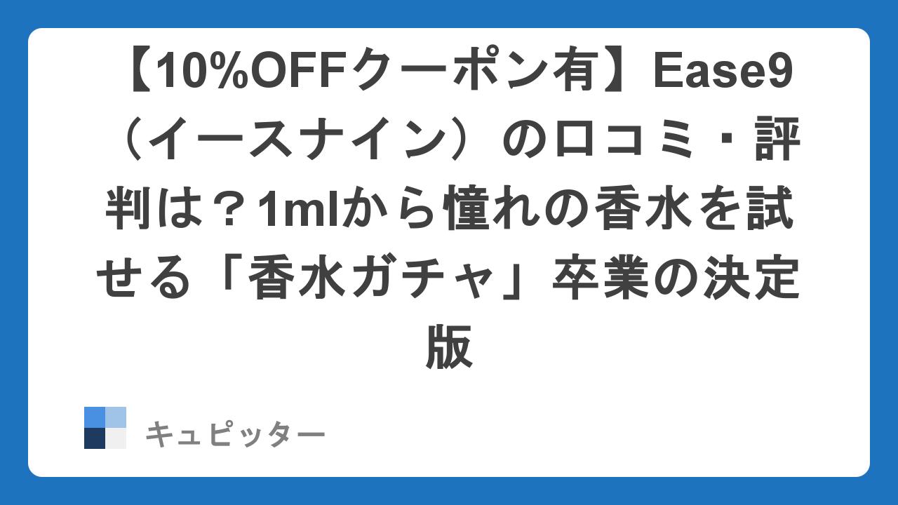 こんにちは、キュピッター編集部です。今回は、そんな香水選びの悩みをスマートに解決してくれる、今注目の香りのECサイト「Ease9(イースナイン)」をご紹介します。