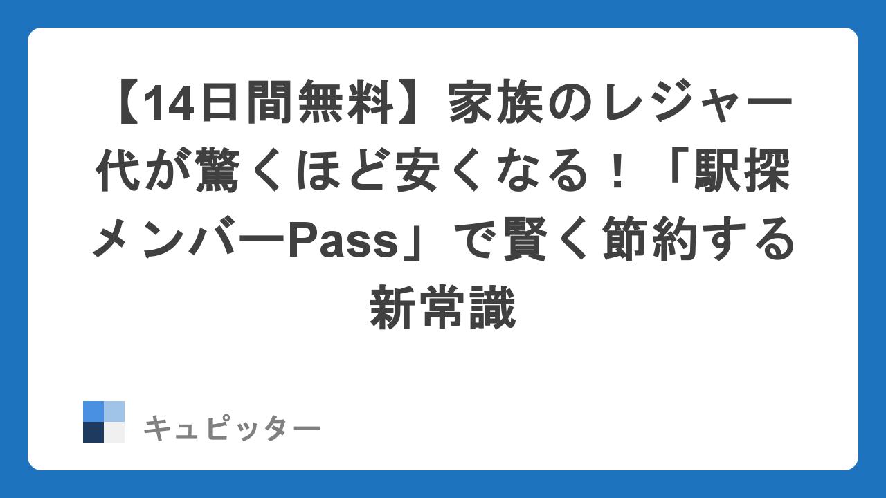 そんな、家計を守りつつ家族の時間も大切にしたいパパ・ママにぜひ知ってほしいのが「駅探メンバーPass」です。