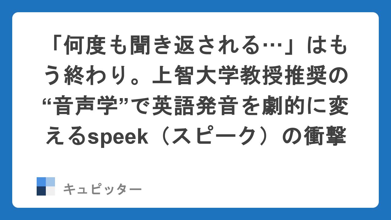 「何度も聞き返される…」はもう終わり。上智大学教授推奨の“音声学”で英語発音を劇的に変えるspeek(スピーク)の衝撃