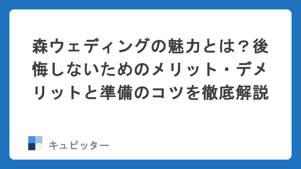 「森ウェディング」を利用するメリット・デメリット(本音の分析)