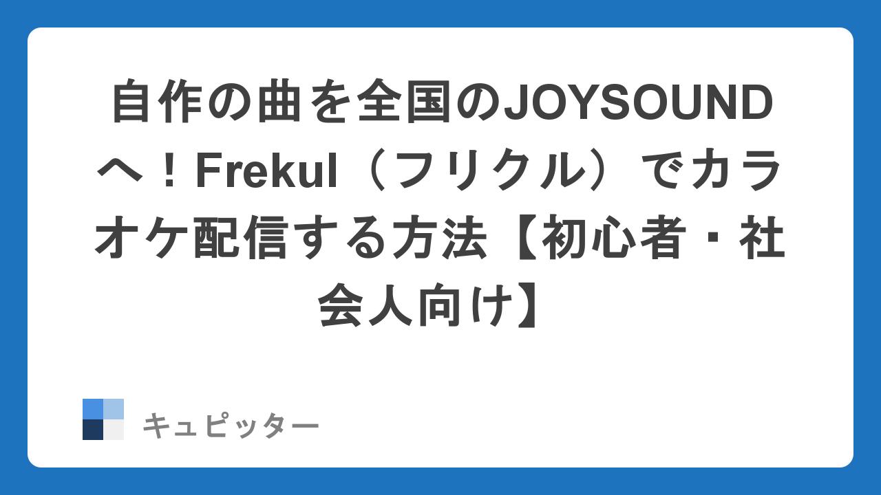 こんにちは、キュピッター編集部です。実は今、プロ・アマ問わず、誰でも自分の曲を全国のJOYSOUNDに配信できるサービスが注目を集めています。それが「カラオケ配信サービス by Frekul(フリクル)」です。