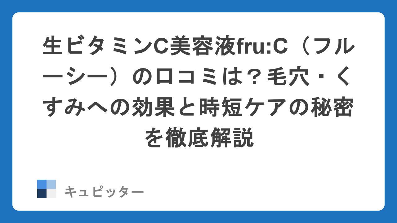 生ビタミンC美容液fru:C(フルーシー)の口コミは?毛穴・くすみへの効果と時短ケアの秘密を徹底解説