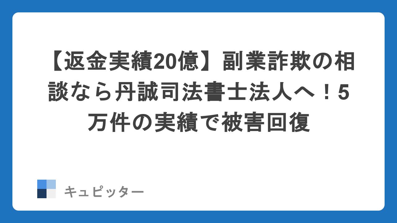 こんにちは、キュピッター編集部です。今回は、副業詐欺の被害に遭い、どうすればいいか分からず立ち止まっている方へ向けて、返金請求のプロフェッショナルである「丹誠司法書士法人」をご紹介します。