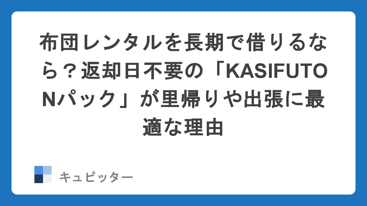 そんな「長期滞在時の布団問題」をスマートに解決してくれるのが、長期専用の布団レンタルサービス「KASIFUTONパック」です。今回は、なぜ多くの個人・法人がこのサービスを選んでいるのか、その理由を徹底解説します。