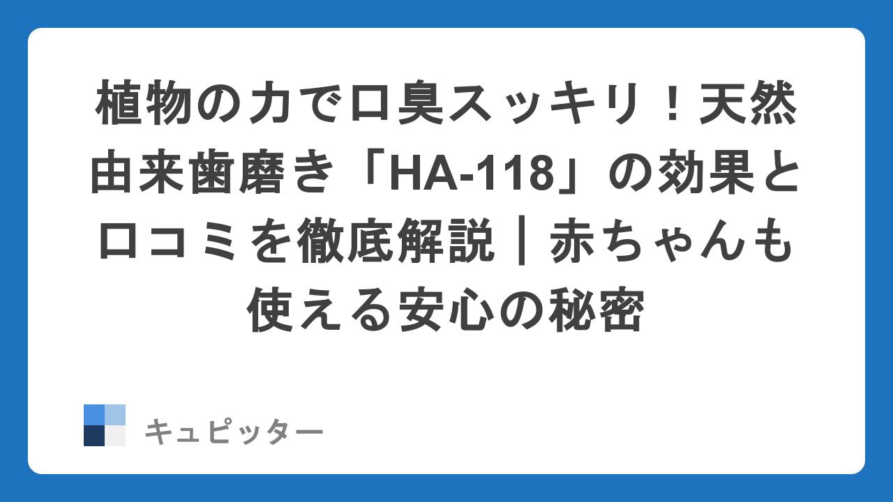 今回は、あの有名な植物活力液「HB-101」でおなじみのフローラ社が開発した、100%天然由来成分の歯磨き粉「HA-118」をご紹介します。