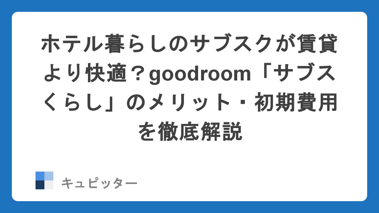 ホテル・マンスリーのサブスク「goodroomサブスくらし」が選ばれる5つの理由