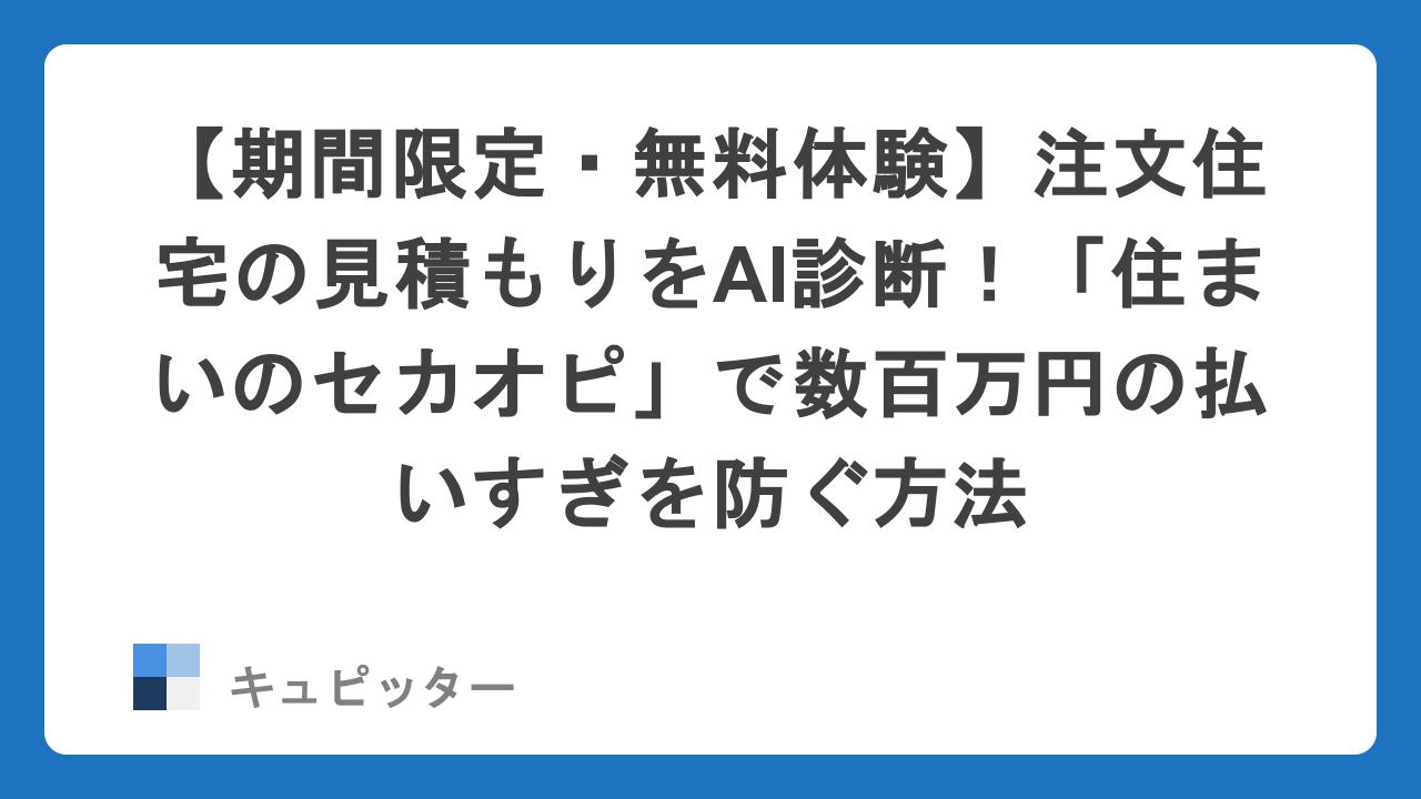 そこで今、賢い施主の間で話題になっているのが「住まいのセカンドオピニオン(通称:住まいのセカオピ)」です。現在、期間限定でベータ版の無料体験も実施されているとのこと。今回は、後悔しない家づくりのための「新常識」を徹底解説します。