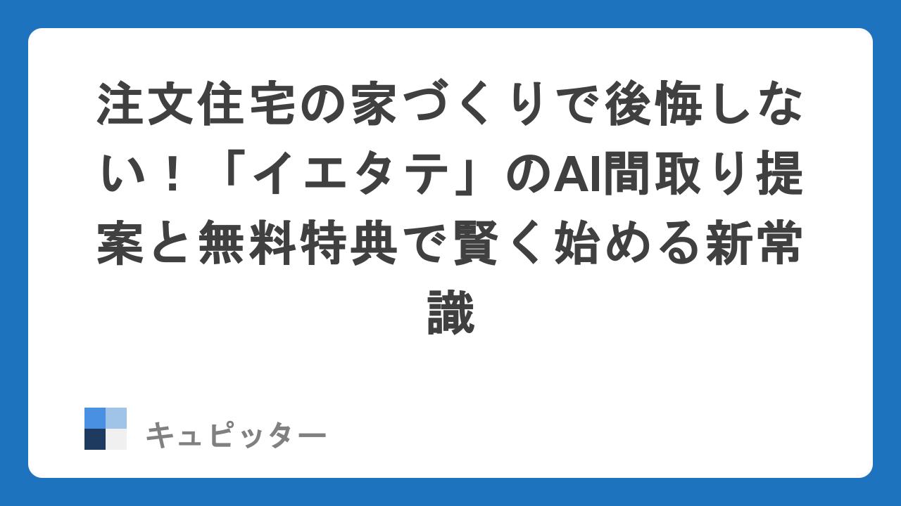 注文住宅の家づくりで後悔しない!「イエタテ」のAI間取り提案と無料特典で賢く始める新常識