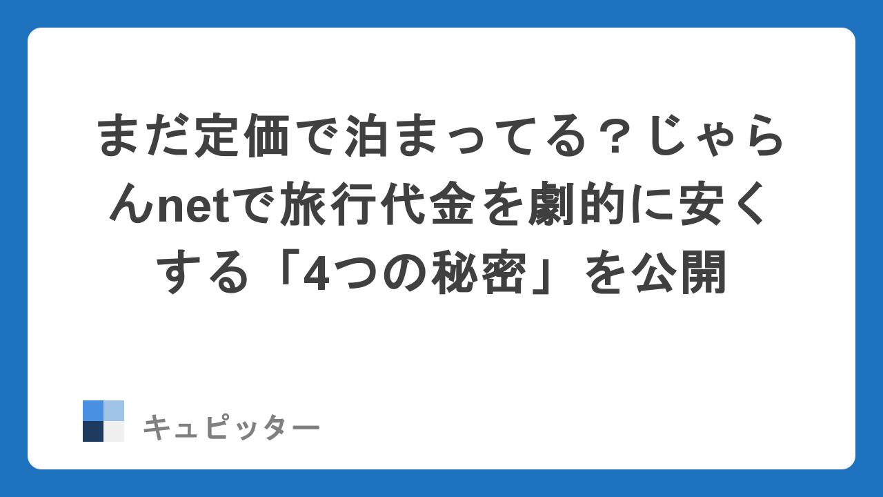 この記事では、じゃらんnetを使って最安値圏で予約し、さらにポイントを最大化させるための「プロのコツ」を余すことなくお伝えします。