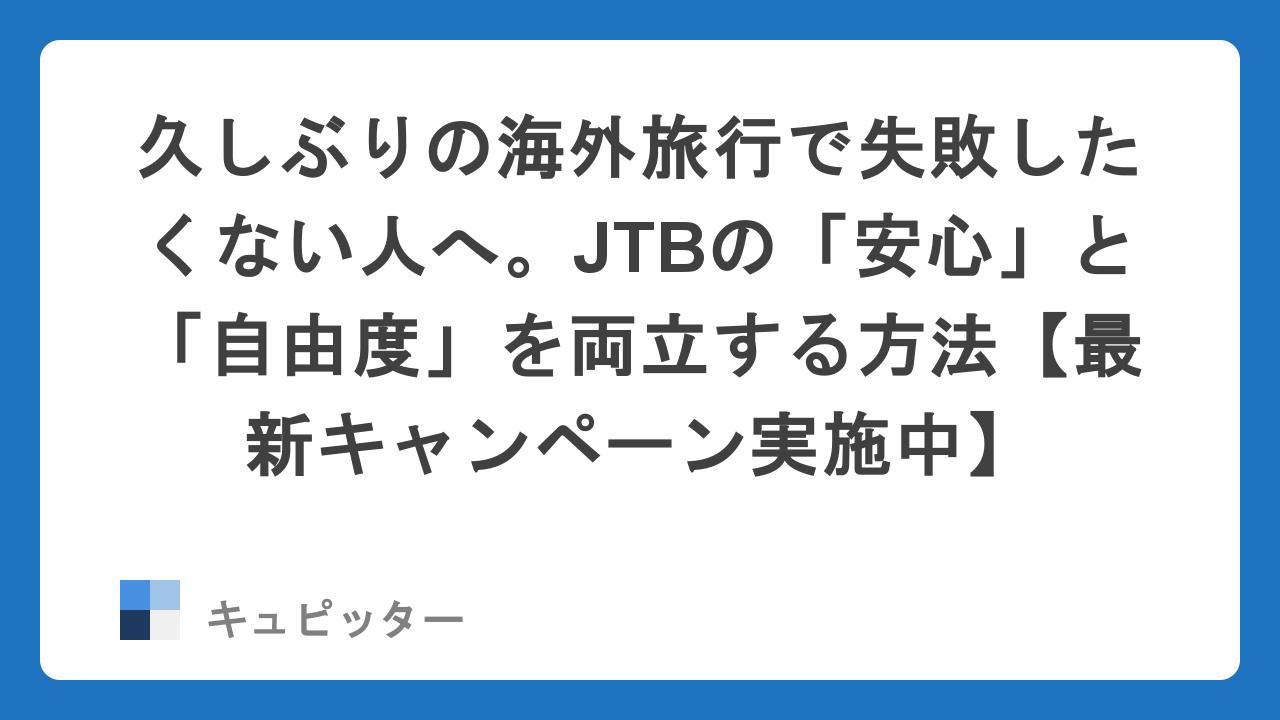 久しぶりの海外旅行、不安はありませんか?JTBが「究極の正解」である理由