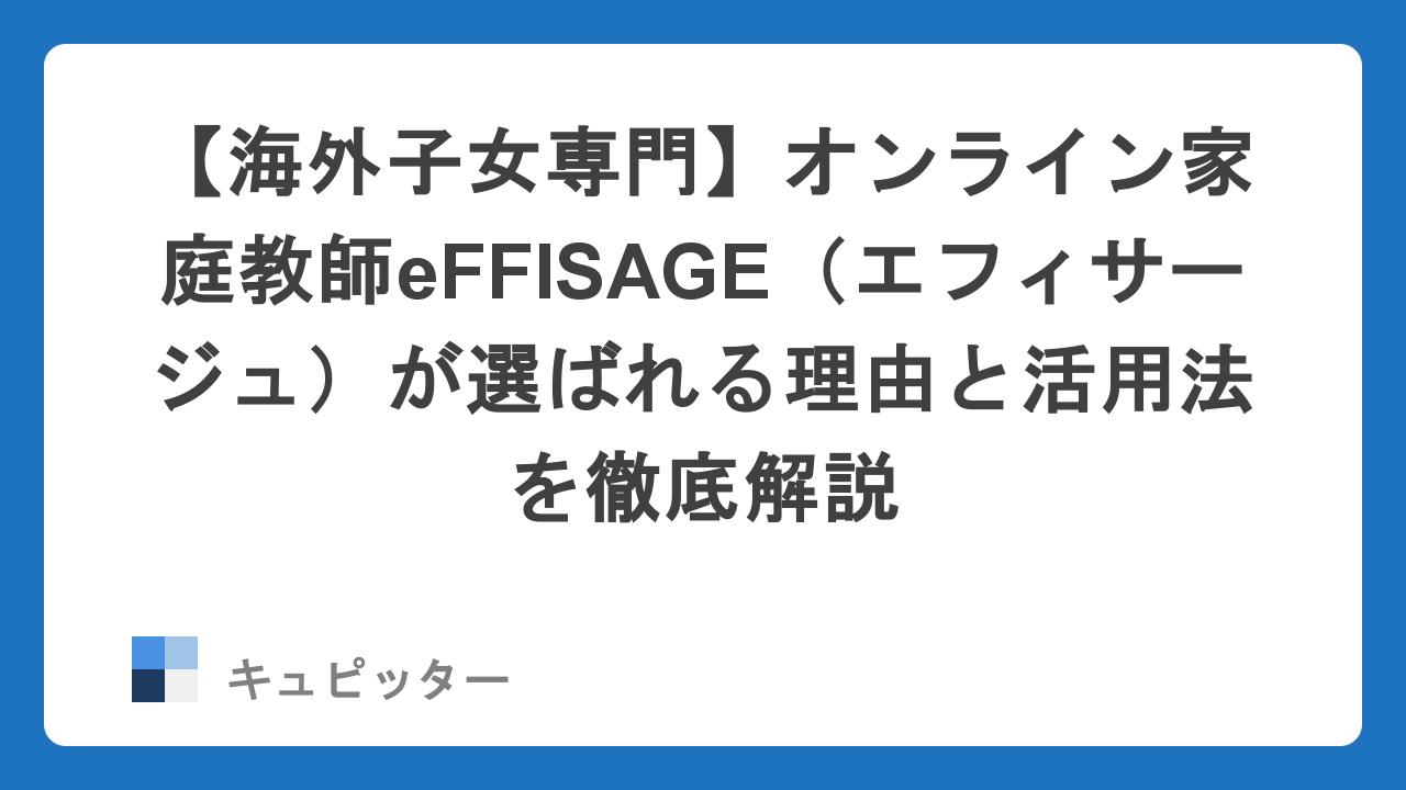 物理的な距離と情報の断絶が生む焦りは、海外在住だからこそ感じる切実な痛みです。そんな海外子女のご家庭が抱える「教育の壁」を壊し、お子様の未来を切り拓くパートナーとして注目されているのが、海外子女専門のオンライン家庭教師「eFFISAGE(エフィサージュ)」です。