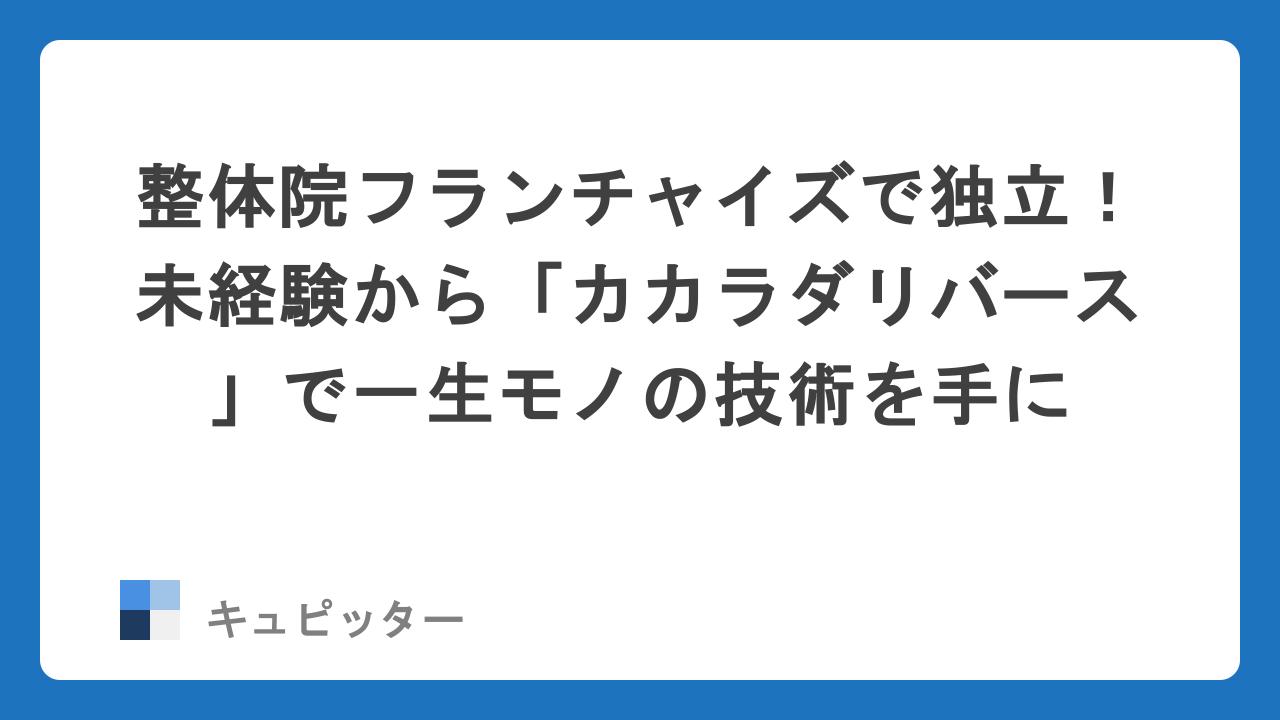 そんな方に今、密かに注目されているのが「腰痛専門」の整体院フランチャイズ『カカラダリバース』です。