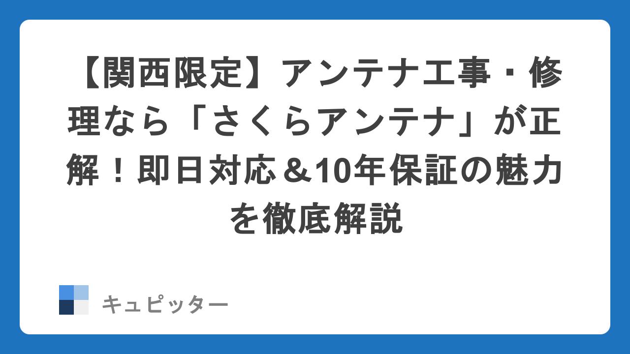 そこで今回は、大阪・兵庫・京都など関西圏で圧倒的な支持を得ているアンテナ工事のプロ集団「さくらアンテナ」を徹底解説します。なぜ多くのユーザーに選ばれているのか、その魅力を詳しくお伝えします。