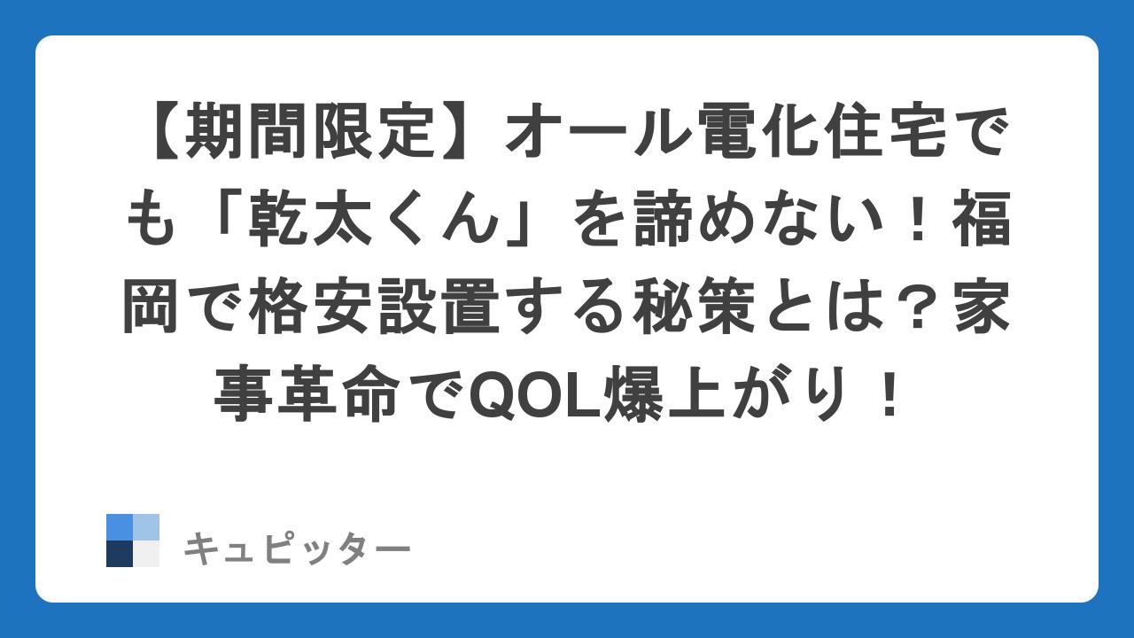 【期間限定】オール電化住宅でも「乾太くん」を諦めない!福岡で格安設置する秘策とは?家事革命でQOL爆上がり!