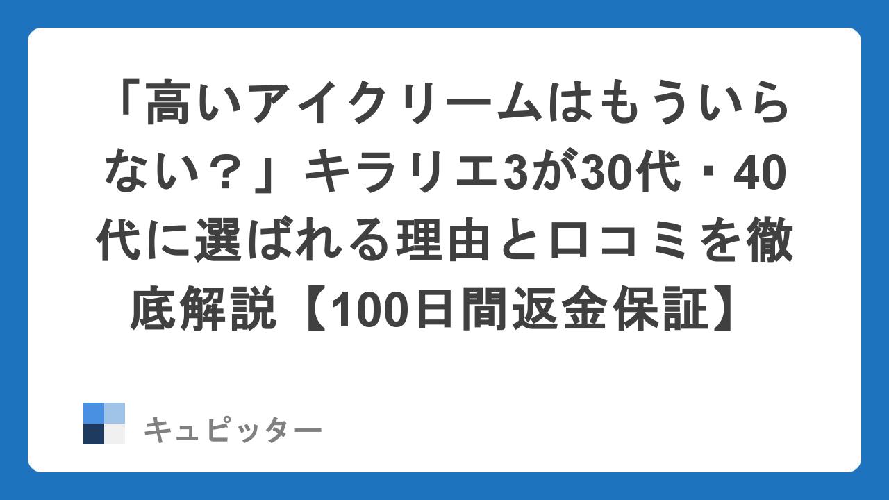 ネットで化粧品を買うとき、一番の不安は「自分の肌に合うかどうか」ですよね。キラリエ3には、その不安を払拭する「100日間返金保証」が付いています。