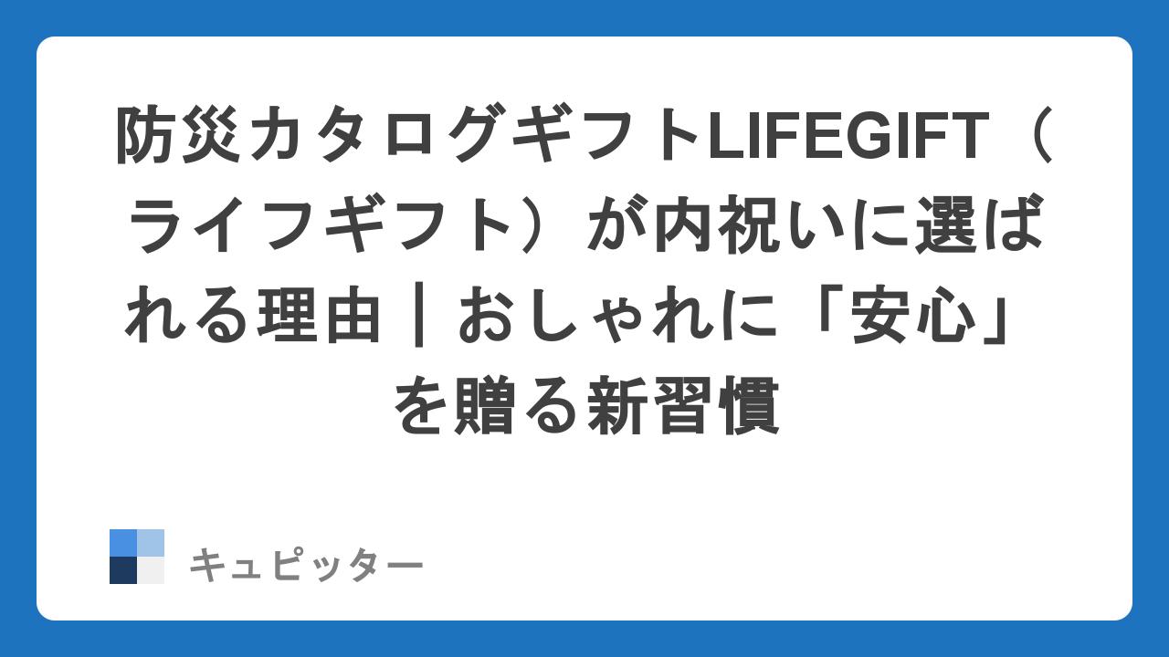 そんな、優しくてこだわり派のあなたにこそ知ってほしいギフトがあります。それは、モノではなく「安心」を贈るという新しい選択肢。今回は、日本初の防災カタログギフト「LIFEGIFT(ライフギフト)」が、なぜ今多くの人に選ばれているのか。その魅力をキュピッター編集部が詳しく紐解きます。