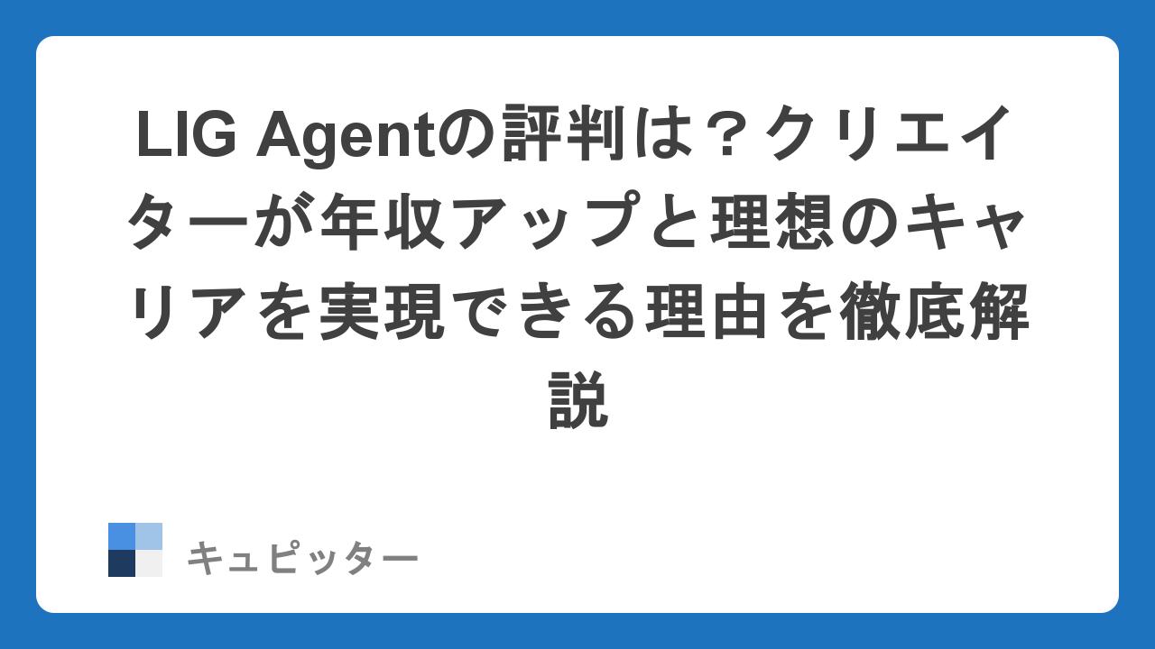 今回は、制作現場を知り尽くしたプロ集団が運営する「LIG Agent」が、なぜ多くのクリエイターに支持されているのか、その真実を深掘りします。