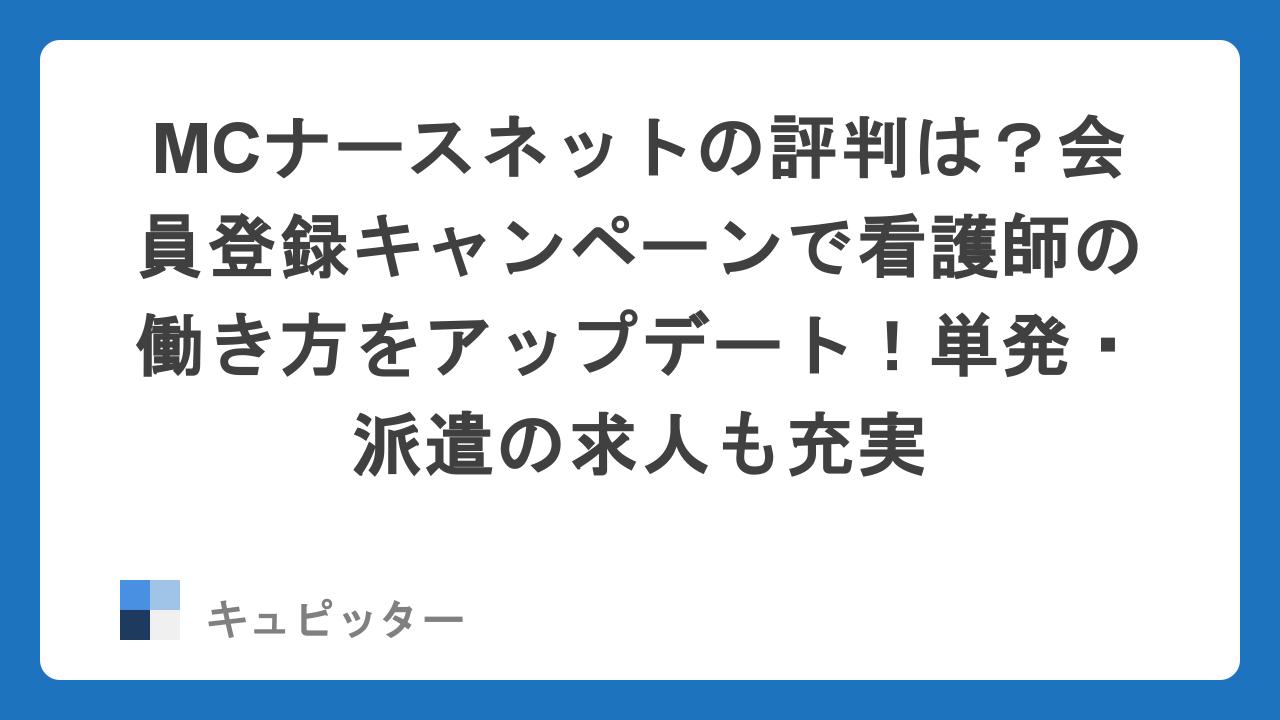 そんな想いを抱えている方に、今ぜひチェックしていただきたいのが、看護師の転職・派遣支援サービス「MCナースネット」です。