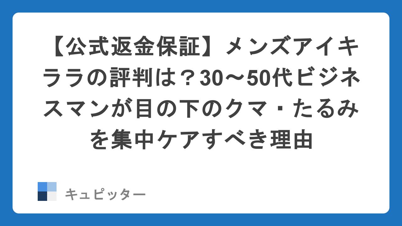 そんな働き盛りの男性たちの間で、今、圧倒的な支持を集めているのが目の下特化型美容液「メンズアイキララ」です。