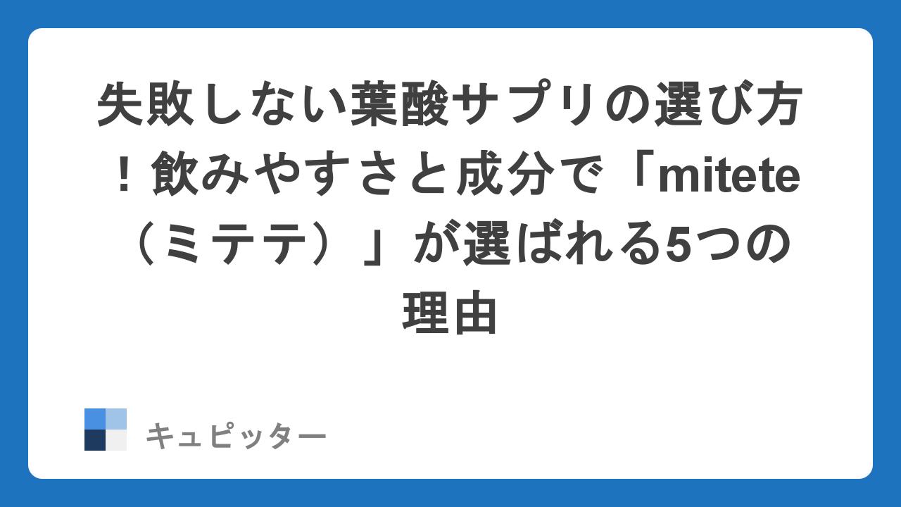 失敗しない葉酸サプリの選び方!飲みやすさと成分で「mitete(ミテテ)」が選ばれる5つの理由