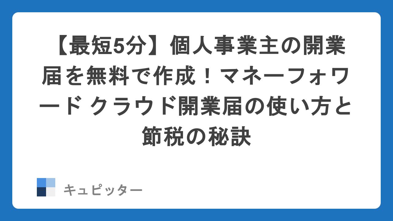 【最短5分】個人事業主の開業届を無料で作成!マネーフォワード クラウド開業届の使い方と節税の秘訣