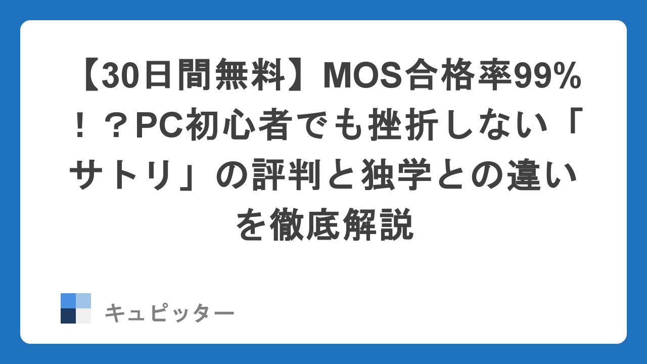 そんな「学びの壁」を取り払うために生まれたのが「サトリ」です。大学発ベンチャーとして10年の実績を持つこのサービスは、「30日間無料」でプロのサポートを受けながら、MOSを含む5つの人気資格を最短ルートで学べるという、従来の常識を覆す仕組みを提供しています。