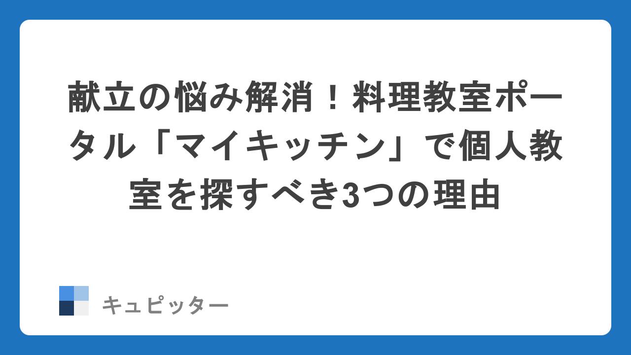 そんな方にぜひ知ってほしいのが、料理教室のポータルサイト「マイキッチン(My Kitchen)」です。自宅のようなアットホームな環境で、あなたにぴったりの「食の楽しみ」が見つかる場所をご紹介します。
