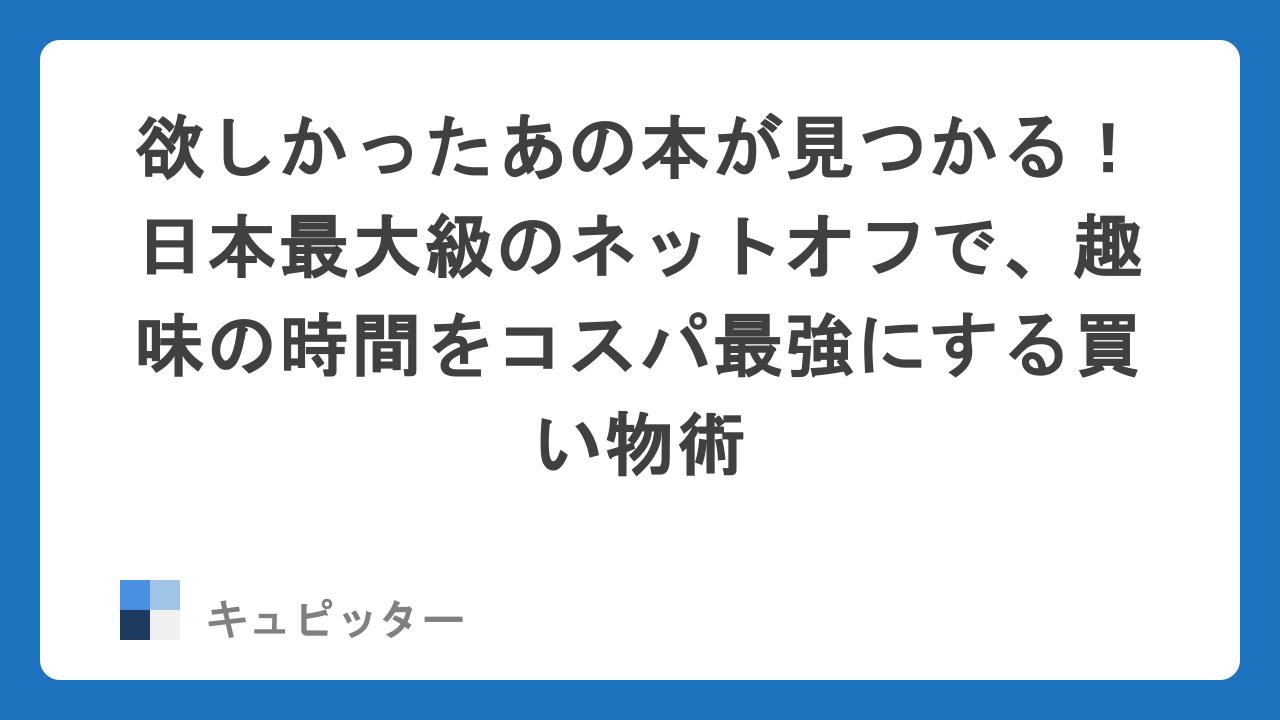 「読みたいマンガが全巻揃わない」「欲しかったゲームが近所の古本屋にない」……そんな経験はありませんか?趣味を全力で楽しみたいけれど、新品で買い揃えるのはお財布への負担が気になるもの。かといって、フリマアプリでの個人間取引は状態の確認ややり取りが少し面倒に感じることもありますよね。