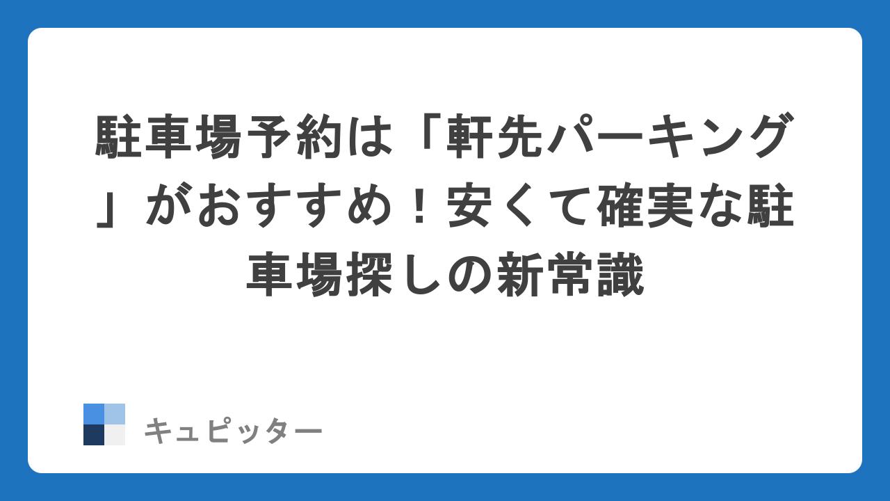 今回は、お出かけのタイパ(タイムパフォーマンス)を劇的に向上させる、駐車場予約サービス「軒先パーキング」をご紹介します。今ならお得なキャンペーンやクーポンが実施されていることもあるので、お出かけの予定がある方は必見ですよ!