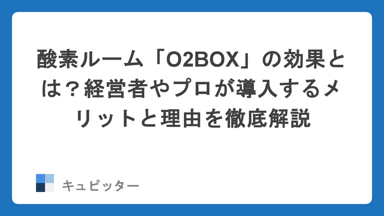 経営者やプロが「O2BOX」を選ぶ5つの決定的理由