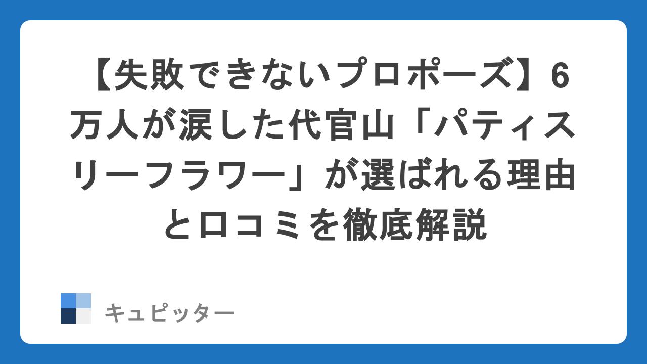 6万件以上の成功を支えてきたパティスリーフラワーなら、あなたの不安を「確信」に変え、彼女の涙を「笑顔」に変えてくれるはずです。